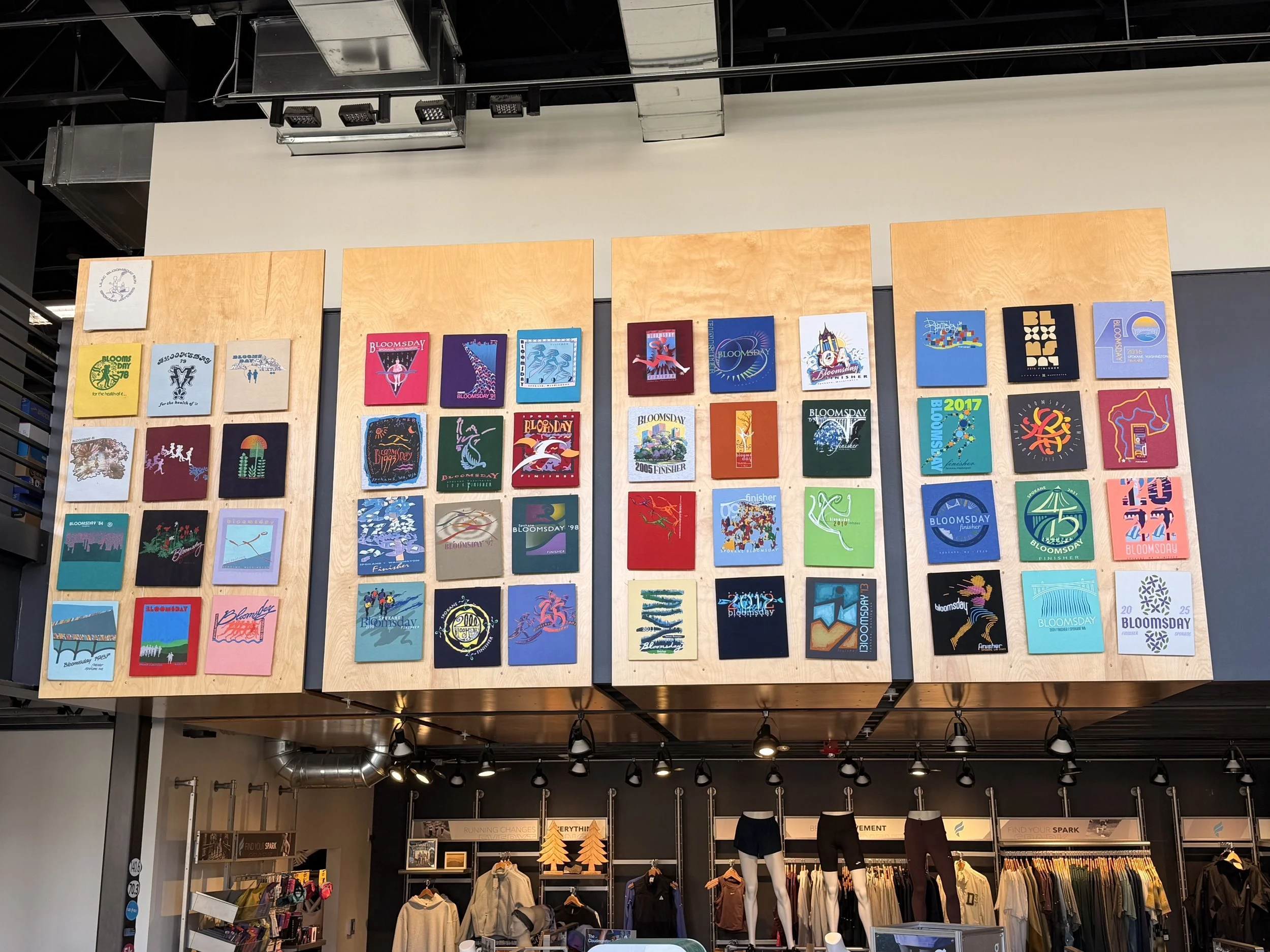 See all 49 Vintage t-shirts displayed at Fleet Feet located in Kendall Yards. This is a private collection loaned by perennial Bloomsday finisher @rickcadwallader.